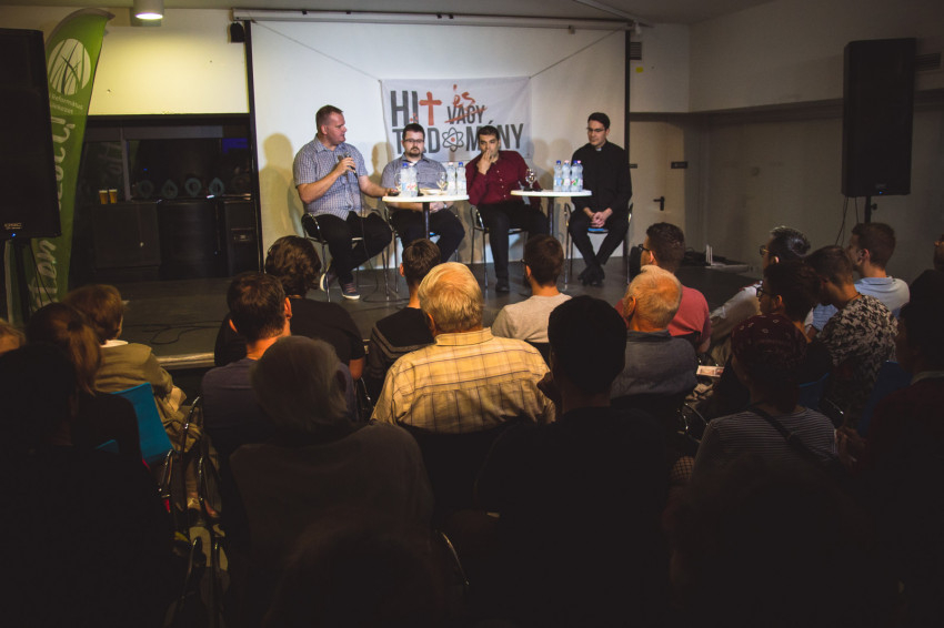 A számos érdeklődőt vonzó esten Gájer László római katolikus pap, a Pázmány Péter Katolikus Egyetem Hittudományi Karának megbízott tanszékvezetője; Kodácsy Tamás református lelkész, programozó matematikus; valamint Fekete Csaba vegyész, a biokémia és a molekuláris biológia kutatója adtak választ a közönség kérdéseire. Az esemény moderátora Püski Dániel, a debrecen-úrréti református gyülekezet lelkésze, geográfus-teológus volt.