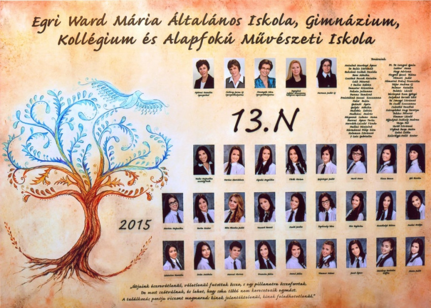 Az Egri Ward Mária Általános Iskola, Gimnázium, Kollégium és Alapfokú Művészeti Iskola 13. N ballagó osztálya: