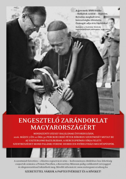 Május 7-én pedig Magyarországért tartanak engesztelő zarándoklatot, Mindszenty József halálának 41. évfordulójához kapcsolódva. Délelőtt fél 11-kor Erdő Péter bíboros mutat be szentmisét az esztergomi bazilikában, a hercegprímás sírja fölött. Szentbeszédet mond Palánki Ferenc debrecen-nyíregyházi megyéspüspök.