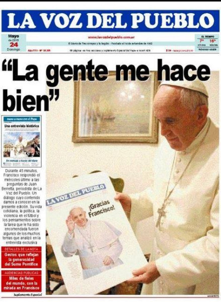 A vatikáni Szent Márta-ház egyik kicsiny, egyszerű termében Ferenc pápa fogadta a La Voz del Pueblo újságíróját. A találkozón nem volt más jelen, és a pápa csak egyetlen feltételt szabott: „Az egyedüli, amit kérek tőled, hogy tisztán játssz velem”, mondta, mielőtt elindítottam a hangfelvevőt. Azután, a negyvenöt percig tartó interjú során megvallotta, hogy korábban „pánikolt az újságíróktól”. Nyilvánvalóvá vált, hogy már túl van ezen a nehézségen.