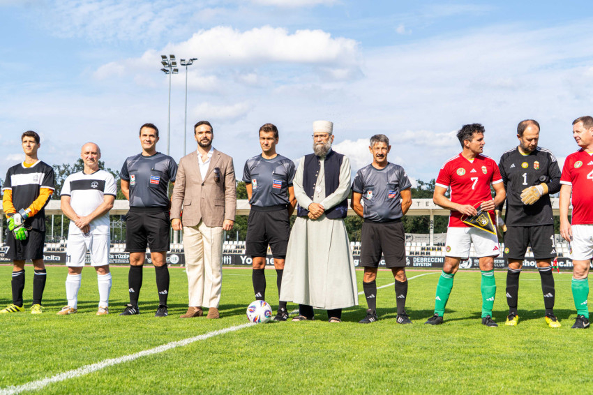 A gálamérkőzés előtt közös imádságra került sor, amit Kocsis Fülöp érsek-metropolita vezetett – majd már más minőségében, kezdőrúgóként láthattuk Barcsa Lajos alpolgármester társaságában. Bár a katolikus papok csapatának edzőjét becézik Kacsának, támadójátékuk, különösen a második félidőben nem hápogott – ellenben a protestáns lelkészek nyelték a gólokat, mint kacsa a nokedlit… Az, hogy ennyire simaliba (és nem simakacsa…) lesz a vége, az első félidőben még nem lehetett látni. Nem indult különösebben nagy iramban a mérkőzés, maradjunk annyiban, hogy ismerkedtek egymással a pályán lévők – persze azt a kezdeti tapogatózás, óvatosabb játék ellenére megállapíthattuk, hogy a katolikus papok gyors támadóik révén kontrákkal próbálnak operálni, több szöglethez is eljutottak, de igazán veszélyes helyzetet nem alakítottak ki. Volt egy szögletvariáció, amit kétszer is megpróbáltak, mindkétszer Kocsis Dániel atya ollózásával ért véget a történet; látványos volt, de a labda egyik esetben sem találta el a kaput.