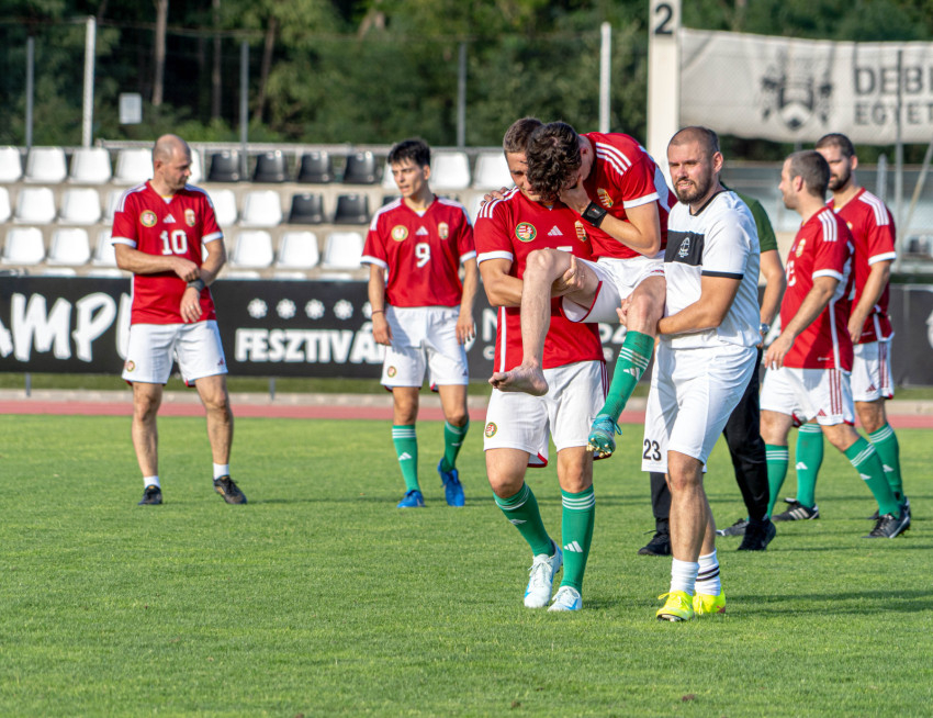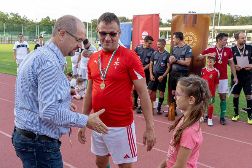 A végeredményt Kovács Csaba atya állította be, akinek végül csak összejött a mesterhármas. Miután a 7–0-s győzelemből három góllal és két gólpasszal vette ki a részét, senkit nem ért váratlanul, hogy Nyíregyháza-Rozsrétszőlő közösségének parókusa kapta a mérkőzés legjobb játékosának járó elismerést (MVP). (Most Valuable Player – a szerk.) Csaba atya rendkívül súlyos sérülést és sok műtétet követően tért vissza, és újra igen magas szinten futballozik – gratulálunk a teljesítményéhez, de legfőképp a visszatéréshez, ami nem ment volna hit, elszántság és kemény munka nélkül. (Októberben lesz húsz éve, hogy az MVP ezen sorok írójának egy baráti foci alkalmával eltörte a kulcscsontját – mindenkinek jobb, ha a gólokat szállítja, és nem a barátait a traumatológiára…)