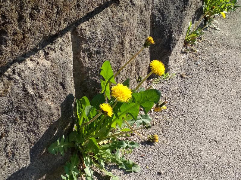 Különös, hogy ez a vészterhes időszak nálunk éppen a természet tavaszi újjászületésével együtt kezdődött! A vers elején az apró kép, ahogy a kutyatej, a pitypang páfrányként szétterülő levélkoszorúja áttöri a járdát, minden áprilisban újra visszaköszön a gyalogosan járó ember számára. Most, hogy ennyi időnk lett hirtelen, érdemes lekuporodni az apró csodák mellé, és közelről is megszemlélni őket! Ez a parányi növény micsoda életerővel dacol nehéz sorsával, és teszi a dolgát a beléírt törvény szerint… Szorosan a járdára lapuló levelei alatt gyűlik a városi por, tavalyi korhadt falevél, kutyaszőr, és mindez még itt is sovány humusszá érlelődik! A gyökér mélyen a kő alá fúrva keresi, kutatja a vizet, az ásványokat, raktározza a tavaly begyűjtött tápanyagot, a levelek tisztán ragyogó smaragdzöld műhelyében pedig már épül, formálódik a növényke évente megújuló teste! Még apró árnyéka is segít a párát minél tovább őrizni, a nap felé forduló, aranysárga virága pedig kínálja a nektárt, a virágport az éppen arra tévedő rovaroknak, édes illatot a járókelőknek. A poros, száraz és már hamarosan felforrósodó járda, a kőkerítés sivatagában apró oázist jelent az élet számára minden parányi pitypangbokor.