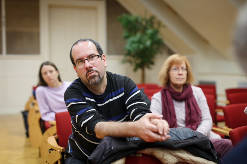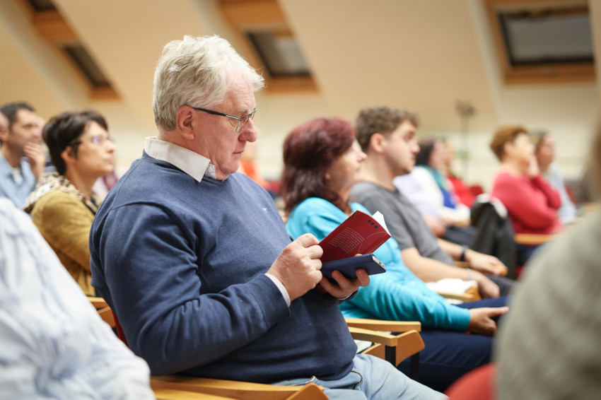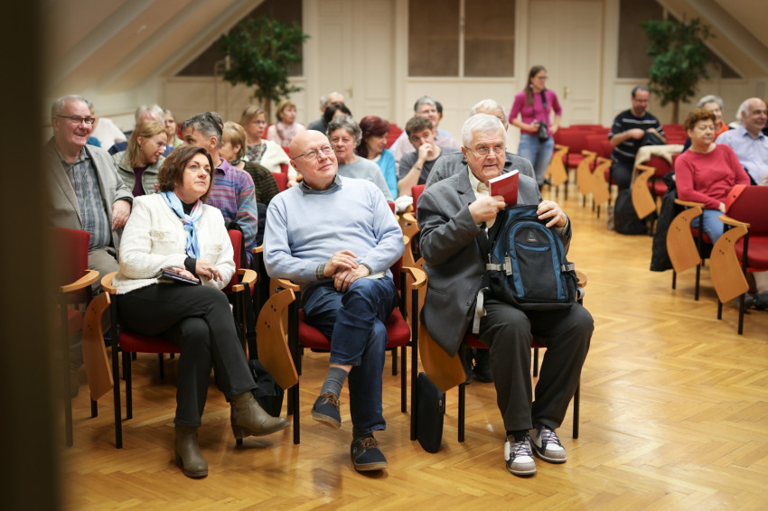A Pázmány Péter Katolikus Egyetem Hittudományi Karán, Budapesten tartott beszélgetést Paksy Eszter, az Új Város Kiadó vezetője moderálta.