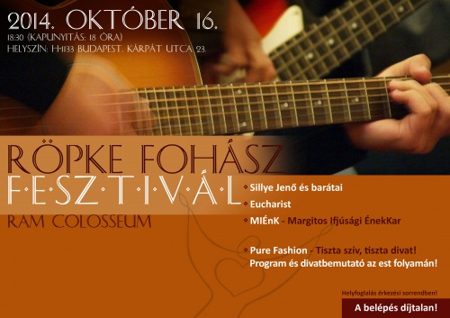Röpke Fohász címmel tartanak ifjúsági zenei evangelizációs estet október 16-án, csütörtökön 18.30-kor.