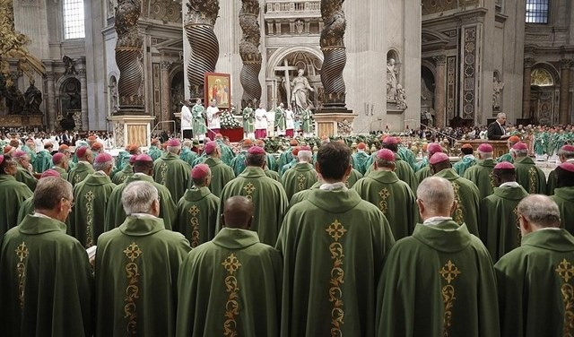 Szeretnék emlékeztetni arra, hogy a szinódus nem konferencia vagy „társalgó”, nem parlament vagy szenátus, ahol egyezséget köt az ember. A szinódus ehelyett az egyház valóságának egyik kifejeződése, vagyis az egyházról van szó, amely együtt halad, hogy a hit szemével és Isten szívével értelmezze a valóságot; az egyházról van szó, amely a hitletéteményhez való hűségről kérdezi önmagát, hiszen számára a hitletétemény nem megtekintendő s nem is csak megőrzendő múzeumot jelent, hanem olyan élő forrást, amelyből az egyház csillapítja szomját, hogy felfrissítse és megvilágosítsa az élet letéteményét.