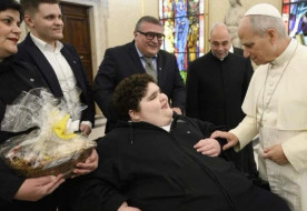 február 23. | 18:10Leó pápa találkozott Marianóval, az ismeretlen betegségben szenvedő fiúval, aki pap szeretne lenniHosszú várakozás és készülődés előzte meg a 12 éves calabriai fiú találkozását a pápával. Mariano egy ismeretlen betegségben szenved, amelynek még neve sincs, és amely miatt megállíthatatlanul hízik.