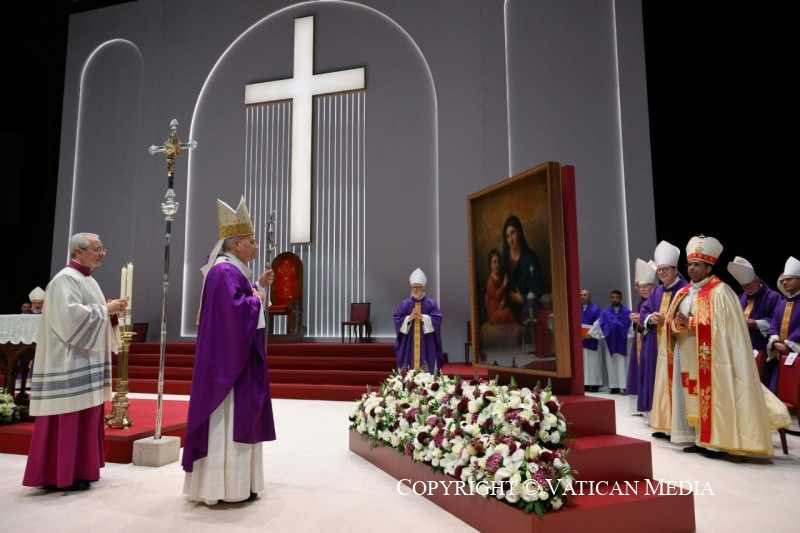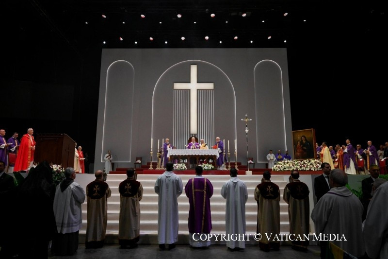 Mindenekelőtt – amint mondtam – ezen az egyházon belül négy különböző liturgikus hagyomány van jelen: a latin, az örmény, a káld és a szír, amelyek mindegyike saját lelki, történelmi és egyháztapasztalati gazdagságával gyarapítja az egyházat. E különbözőségek megosztása kiemelkedő módon mutathatja meg Krisztus Jegyesének egyik legszebb vonását: az összekötő katolicitást.