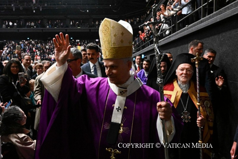 E liturgia egy második közösségi kötelékre is rámutat: az ökumenikus kötelékre. Ezt mutatja más felekezetek képviselőinek jelenléte is, akiket mélységes hálával köszöntök. Az ugyanabban az Üdvözítőben való hit ugyanis nemcsak egymással köt össze bennünket, hanem valamennyi testvérünkkel, akik más keresztény egyházakhoz és közösségekhez tartoznak. Ezt tegnap is megtapasztaltuk az İznikben (Nikaia) tartott imán. Ez is olyan út, amelyen régóta együtt járunk, és amelynek nagy előmozdítója és tanúja volt Szent XXIII. János, akit a kölcsönös szeretet szoros szálai fűztek e földhöz. Ezért, miközben XXIII. János pápa szavaival kérjük, hogy „teljesedjék be az egység nagy misztériuma, amelyért Jézus Krisztus végtelen buzgósággal imádkozott a mennyei Atyához életáldozatának küszöbén” (Nyitóbeszéd a II. vatikáni egyetemes zsinaton, 1962. október 11., 8.2),