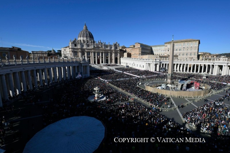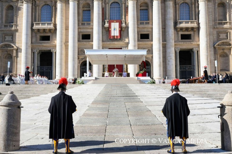A válaszos zsoltárban ezt énekeltük: „Örömmel induljunk az Úr házába” (vö. 121. zsoltár). A mai liturgia tehát arra hív bennünket, hogy dicséretet zengve és örömmel járuljunk együtt az Úr Jézus Krisztus, a világmindenség királya elé, aki szelíd és alázatos uralkodó, mindenek kezdete és vége. Az ő hatalma a szeretet, trónusa a kereszt, és a kereszten át országa beragyogja a világot. „Ő a keresztről uralkodik” (vö. Vexilla Regis himnusz), mint