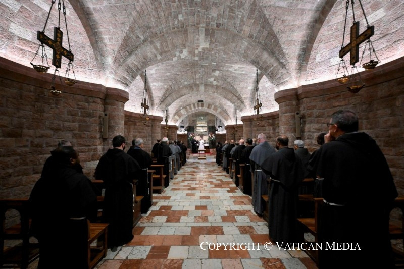A Szentatya ma reggel helikopterrel érkezett a Poverello városába, 8 óra után szállt le a Migaghelli stadionnál. Onnan autóval indult a város központjába. Assisi a művészet, a történelem, kultúra, a vallásos áhítat földje, amely zarándokok millióinak célpontja, és amelyet az évszázadok során húsz pápa is meglátogatott. Ferenc pápa 2020-ban itt írta alá a Fratelli tutti kezdetű enciklikát.
