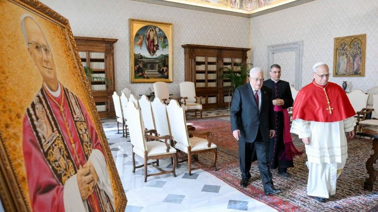 Ez volt az első személyes találkozójuk, miután korábban telefonon érintkeztek. A Szentszéki Sajtóközpont közleménye szerint a megbeszélés szívélyes légkörben zajlott, és hangsúlyozták, hogy „sürgető szükség van a gázai civil lakosság megsegítésére, a konfliktus mielőbbi lezárására, valamint a kétállami megoldás előmozdítására”.