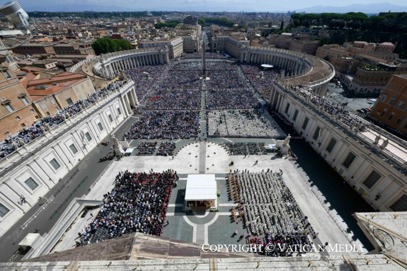 Mielőtt befejeznénk ezt a szentmisét – melyet oly régóta vártunk! –, szeretnélek üdvözölni mindnyájatokat, és szeretnék köszönetet mondani mindnyájatoknak, akik ilyen nagy számban eljöttetek, hogy együtt ünnepeljük a két új szentet. Szeretettel köszöntöm a püspököket és a papokat is. Megkülönböztetett tisztelettel üdvözlöm a hivatalos küldöttségeket és a tiszteletre méltó hatóságokat.