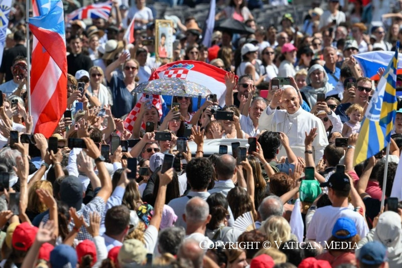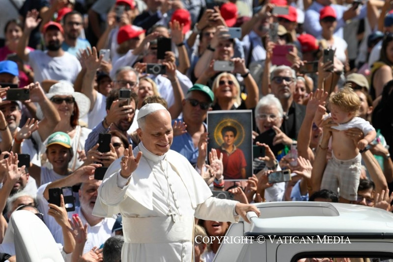 Ebben a légkörben jó felidéznünk, hogy tegnap az Egyház két új boldoggal is gazdagodott. Tallinnban, Észtország fővárosában boldoggá avatták Eduard Profittlich jezsuita érseket, akit 1942-ben öltek meg a szovjet rezsim egyházellenes üldözése során. Veszprémben, Magyarországon pedig boldoggá avatták Bódi Mária Magdolnát, egy fiatal világi nőt, akit azért öltek meg 1945-ben, mert ellenállt az őt megerőszakolni akaró katonáknak.