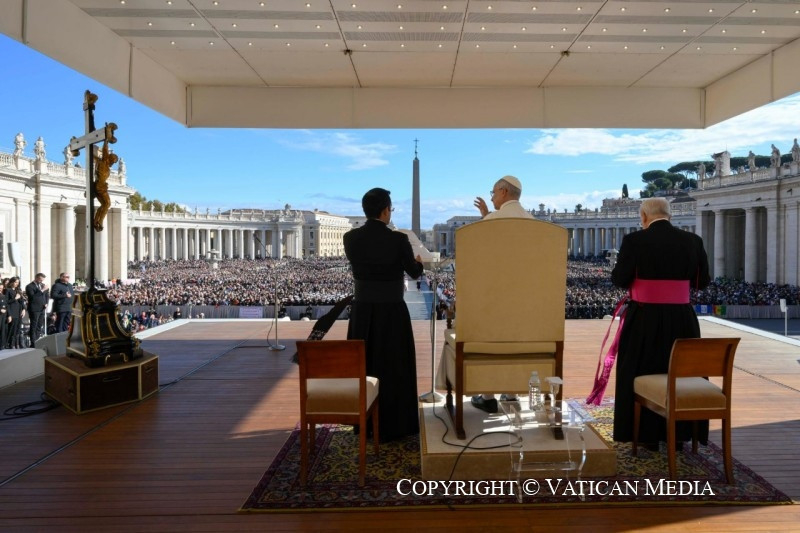 A Szentatya több nyelven is összefoglalta katekézisét, majd üdvözölte a jelen lévő híveket. Az általános kihallgatás a Miatyánk elimádkozásával és az apostoli áldással zárult.