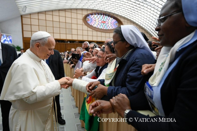 Életetek, szervezeti felépítésetek, szerzetes intézményeitek gyakran ténylegesen nemzetközi és interkulturális jellege mind olyan helyzetbe hoz benneteket, amely kiváltságos lehetőséget ad arra, hogy nap mint nap gyakoroljatok olyan értékeket, mint egymás meghallgatása, a részvétel, a vélemények és képességek megosztása, közös utak keresése a Szentlélek hangjára figyelve. Az Egyház ma azt kéri tőletek, hogy legyetek különleges tanúi mindezeknek életetek különféle dimenzióiban, elsősorban azzal, hogy közösségben vagytok Isten nagy családjával, anyának és tanítónak tekintve azt, megosztva benne hivatásotok örömét, és – ahol szükséges – legyőzve a megosztottságokat, megbocsátva elszenvedett igazságtalanságokat, és bocsánatot kérve az önelégültségből fakadó elzárkózásaitokért. Dolgozzatok azon, hogy napról napra egyre inkább a „szinodalitás szakértőivé” váljatok, hogy ennek prófétái lehessetek Isten népe szolgálatában.