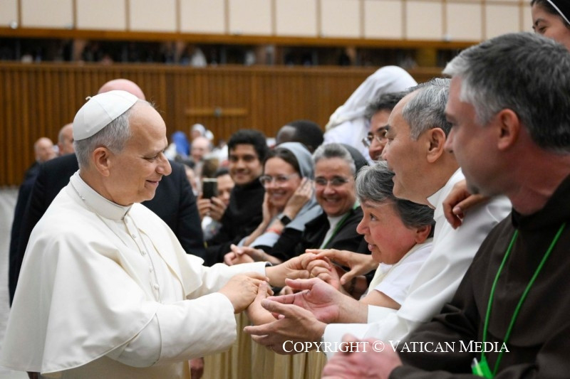 Örömmel találkozom veletek, akik a világon élő valamennyi megszentelt életű férfit és nőt képviselitek jubileumotok hetében Rómában. Szeretetteljes, szívből jövő öleléssel fogadlak benneteket, amelyet szeretnék eljuttatni a föld legtávolabbi szögleteibe is, ahol tudom, hogy megtalálhatók vagytok. Ferenc pápa szavaira utalva szeretném én is kijelenteni, hogy