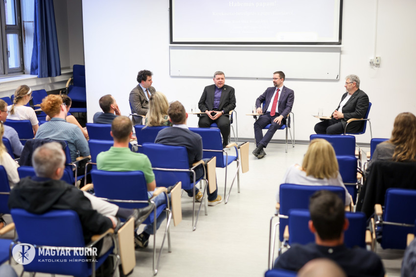 Bevezetőként a résztvevők megjegyezték: ágostonos szerzetes ült már Szent Péter székében IV. Adorján (Hadrián, 1154–1159) és IV. Jenő (1431–1447) személyében. A közelmúlt pápái közül csak XII. Piusz volt az, akit hamarabb választottak meg, mint XIV. Leót. Ugyanakkor Robert Francis Prevost az első észak-amerikai pápa. A beszélgetőtársak arra is rámutattak, hogy az új egyházfő járt már a Pázmányon, hiszen ott volt Ferenc pápa kíséretében 2023-ban.